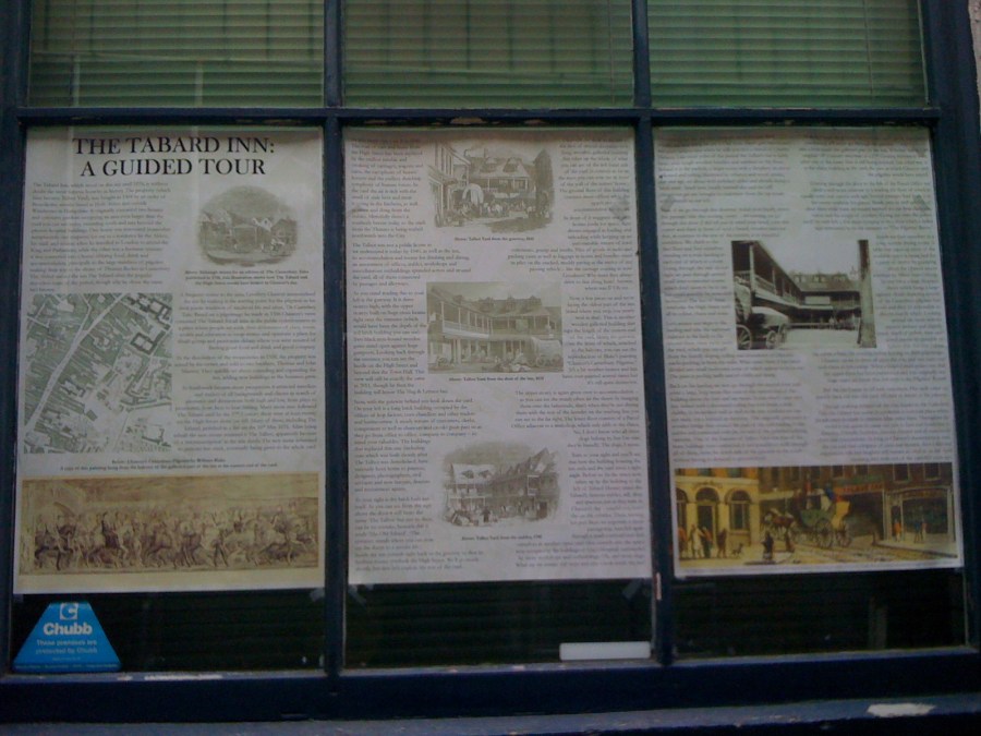 The Tabard Guided Tour – as seen in Copyprints’ window, Talbot Yard, Southwark